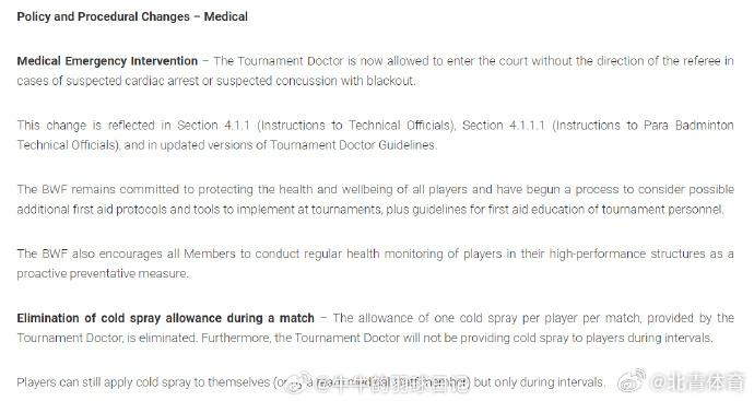 原标题:《世界羽联新规:医生可直接进赛场》