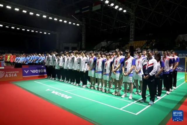 7月1日,参赛队伍在比赛前默哀。新华社发(印度尼西亚羽毛球协会供图)