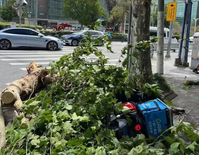 7月27日下午,上海浦东新区康沈公路秀沿路路口一行道树突然折断,导致一名快递小哥被砸身亡。经初步判断,这棵树是遭大风吹断。
