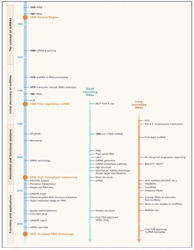 在该综述中,陈玲玲研究员与V. Narry Kim教授从发现历程、进化保守性特点、生物合成与化学修饰机理、在体功能机制和生理病理学意义等多个维度系统总结了近40年来小非编码RNA和长非编码RNA领域的研究进展,详细论述了非编码RNA在调控基因表达过程中的异同、协同互作以及生理病理功能。她们指出RNA深度测序、RNA成像、基因编辑介导的RNA功能研究、RNA化学生物学等多方向的技术革新与学科的交叉融合发展,对于解释非编码RNA的分子机制与功能作用具有巨大推动作用。此外,该综述还阐述了小非编码RNA基础研究与应用的发展历程,并指出相关长非编码RNA的研究可以借鉴小非编码RNA研究的经验。同时,该综述展望了非编码RNA领域未来的研究方向,包括挖掘非编码RNA新种类、新修饰,理解它们的折叠、加工与代谢的机理,深入揭示相关生理病理学意义,解析RNA与微环境的交互机制,以及发展交叉手段研究大片段RNA及其与互作蛋白质的结构,包括人工智能的应用等。最后,该综述还指出非编码RNA技术在未来临床疾病诊疗中具有应用前景。