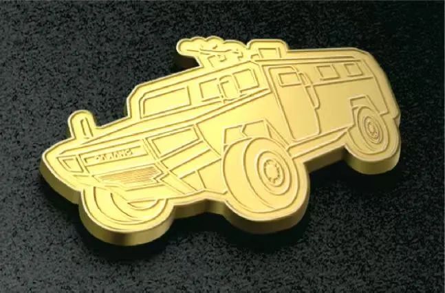 在结构设计上,通过参考两型制式武器外观尺寸,进行等比例缩小后,采用半剖浮雕结构形式,呈现出类似立体浮雕的效果。