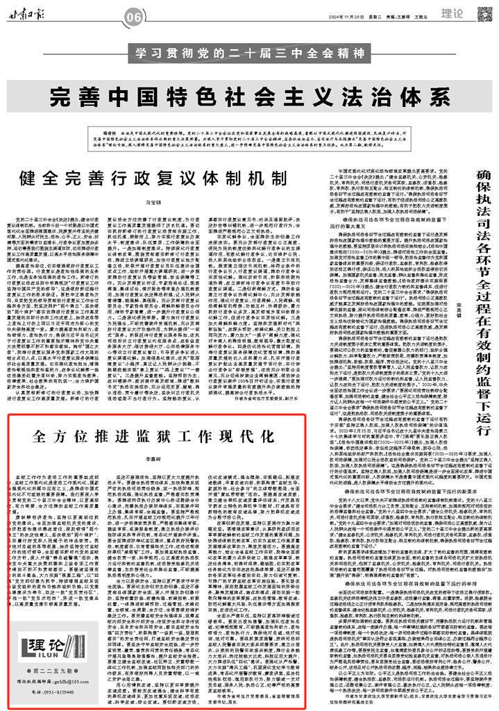 原标题:《【学习贯彻党的二十届三中全会精神】全方位推进监狱工作现代化》