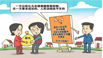 民法典第一千零四十二条规定,禁止借婚姻索取财物。借婚姻索取财物违反了婚姻自由原则,应当坚决予以打击。四、《彩礼规定》第三条:人民法院在审理涉彩礼纠纷案件中,可以根据一方给付财物的目的,综合考虑双方当地风俗、给付时间和方式、财物价值、给付人及接收人等事实,认定彩礼范围。