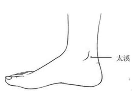按摩手法:用拇指指腹先顺时针按揉太溪穴20次,再逆时针按揉20次,每次按揉5分钟。