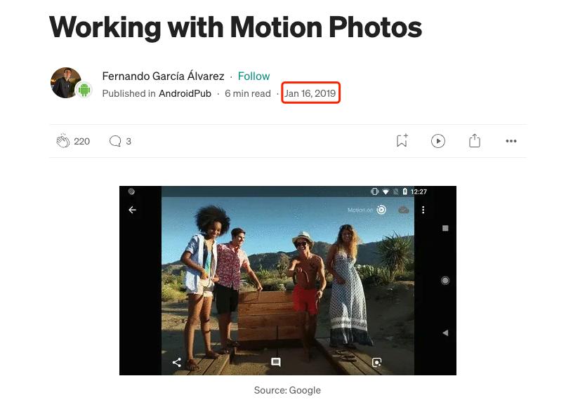直到今年 7 月份,谷歌才更新了安卓开发者网站,正式发布了一条名叫 Motion Photo 1.0 的动态照片储存标准。