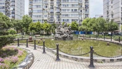 所以你会看到一个看着像老破小的小区里面竟然了做了水景