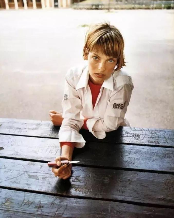 都说爱作的女孩运气都不会太差,摄影师Peter Lindbergh无意间发现带假短发的Linda超带感,他就建议她把头发搞短,并扬言一定会吸粉成为时尚界的潮儿。Linda信了这股子邪劲儿,请来了法国发型师朱利安·迪伊斯剪了一个短的野孩子发型。