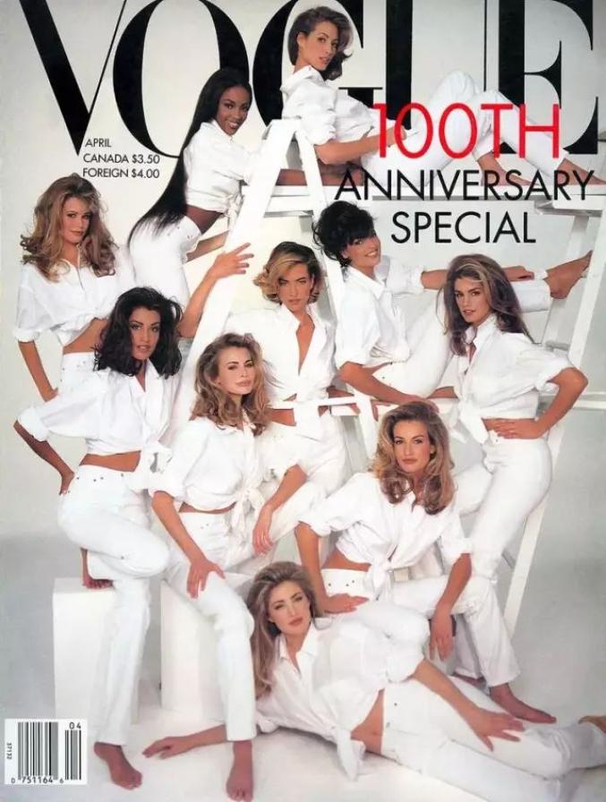 100th《Vogue》1992年4月Linda和其他几位超模登上了《Vogue》100周年纪念特刊的封面,她们创造了Vogue销量最高的特刊。