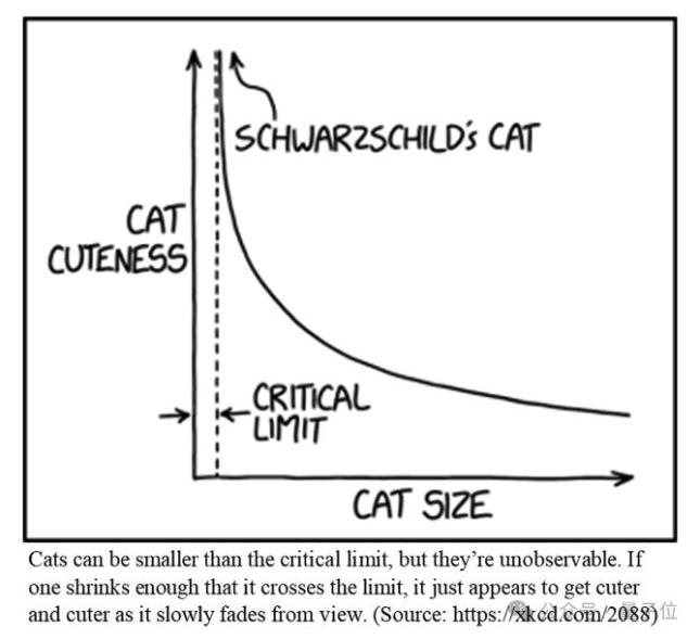 此前虽然物理学家已经研究过猫的一些特性(比如猫总能四脚着地的能力) ,还有下图这种用来描述猫越小越可爱的“黑洞猫”幽默比喻。
