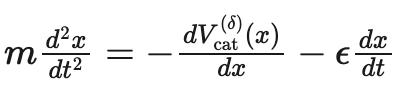 作为初步近似,他们将猫的动力学模型定义为在存在外部势能(由静止的人引起)和摩擦项的情况下,一个服从牛顿力学的点粒子。