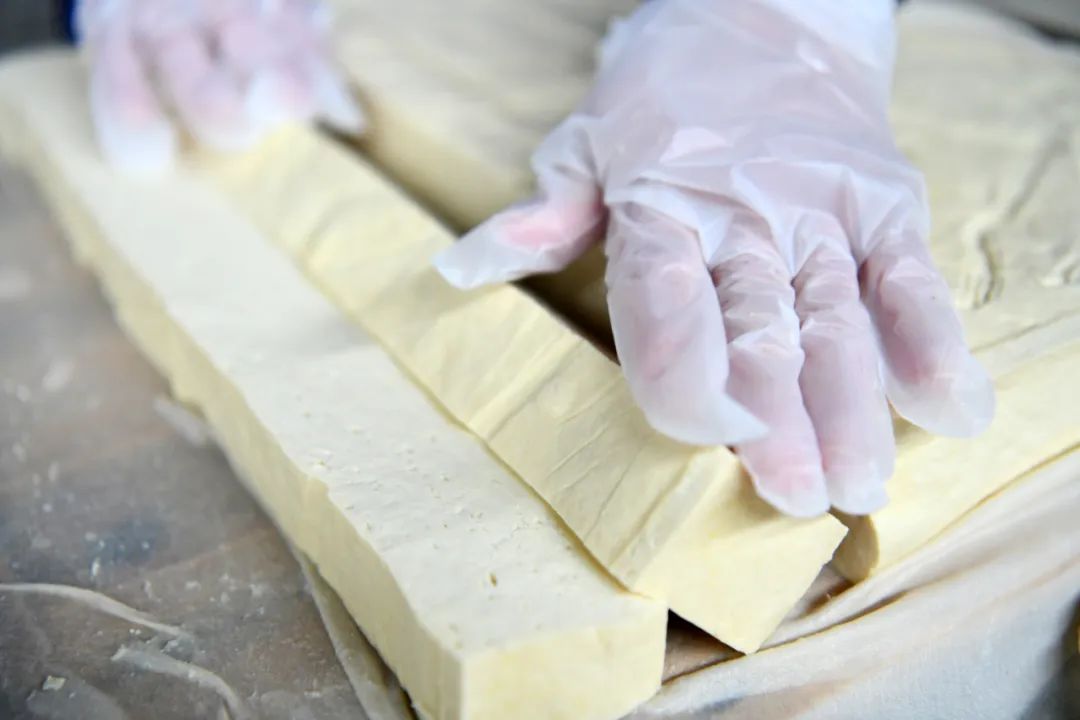 此外,根据加工工艺的不同,豆腐还可分为:冻豆腐、调味豆腐、脱水豆腐、豆腐花。例如,冻豆腐是以豆腐或调味豆腐为原料,经冷冻而成的产品。冻豆腐经过冷冻处理时内部形成了许多孔隙,呈现出蜂窝状的结构,更具弹性,在烹饪时更容易入味,味道更加鲜美。