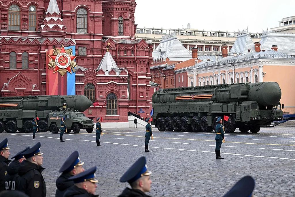RS-26“边界”导弹是一种基于RS-24“亚尔斯”导弹研制的新型导弹,图为2024年莫斯科胜利日阅兵式上的RS-24洲际弹道导弹系统 视觉中国