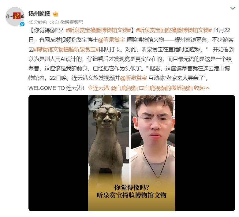“博物馆文物因撞脸听泉爆火”
