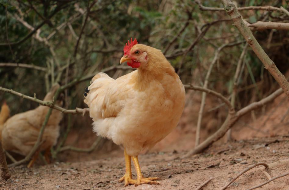 母鸡羽毛鲜艳、冠色鲜红、肌肉丰满,