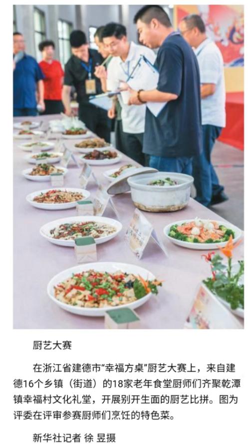 11月23日,《人民日报海外版》聚焦社区食堂和老年人助餐服务,报道了建德市“幸福方桌”厨艺大赛,提升厨师的技艺水平和服务意识,为老年人打造更高品质的“舌尖养老”。