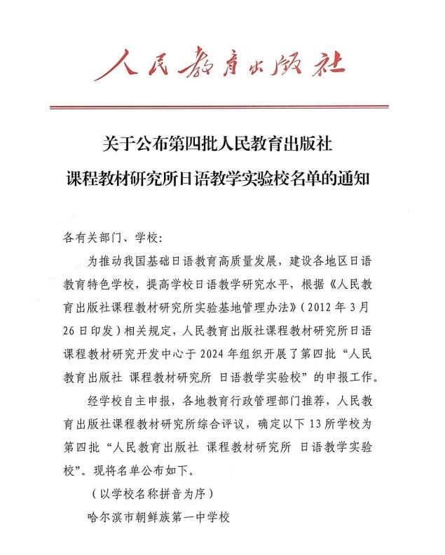 据悉,为推动我国基础日语教育高质量发展,人民教育出版社课程教材研究所日语课程教材研究开发中心于2024年组织开展了第四批“人民教育出版社 课程教材研究所 日语教学实验校”评选活动,礼乐中学成功入选,是江门市首个且唯一入选的学校。