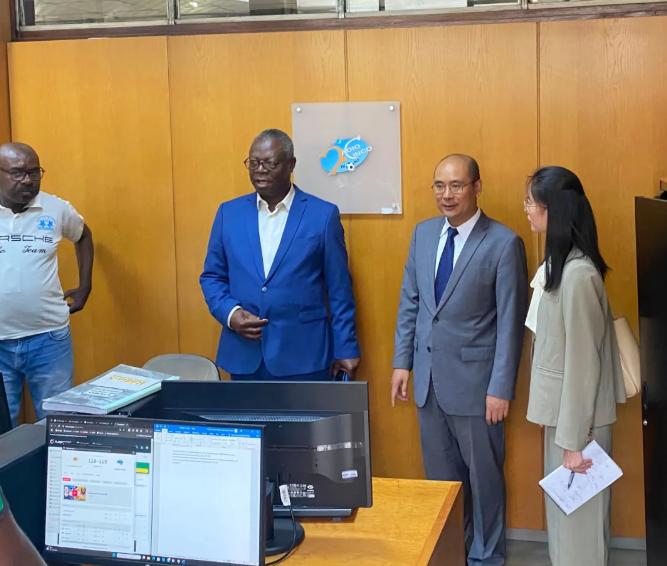 11月22日,驻安哥拉大使张斌走访安国家广播电台,参观该台采编部、直播间、中央控制室等,与董事会主席内图及主要负责人亲切友好交谈。