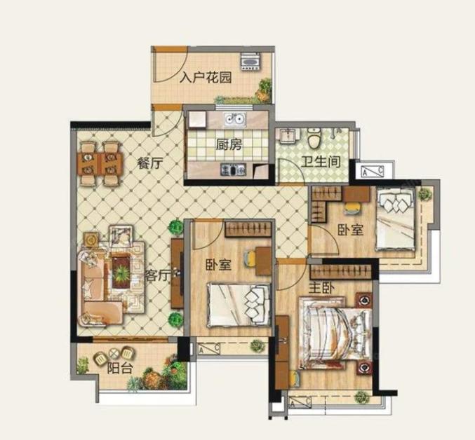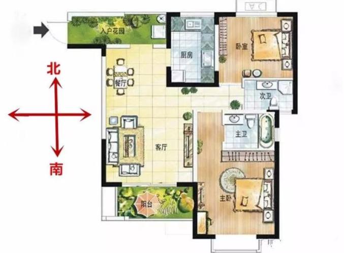 入户花园,其实就是在入户门与客厅门之间设计一个类似玄关概念的花园,起到入户门与客厅的连接过渡作用