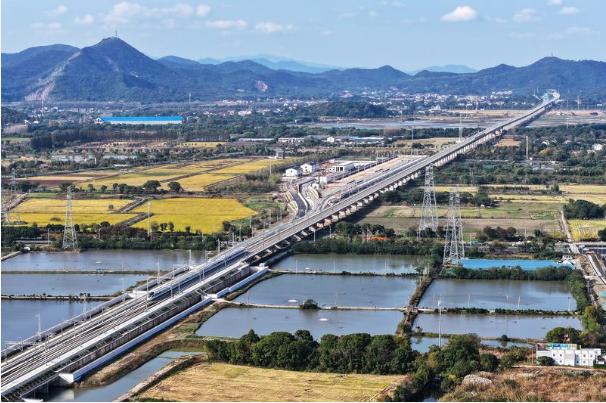 11月23日,沪苏湖高铁首趟试运行列车G55505次行驶在湖州境内(新华社照片)。——改革是制度建设。新时代改革开放具有许多新的内涵和特点,其中很重要的一点就是制度建设分量更重。国家治理制度体系的“四梁八柱”已搭起来了,还要再升级。进一步全面深化改革,坚持以制度建设为主线。