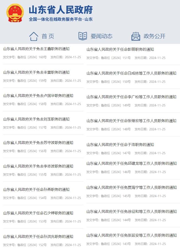 11月25日,山东省政府发布最新人事任免通知,涉及济南大学、聊城大学、齐鲁工业大学、山东理工大学、青岛科技大学、山东农业大学、临沂大学、山东第一医科大学、山东第二医科大学等14所高校。