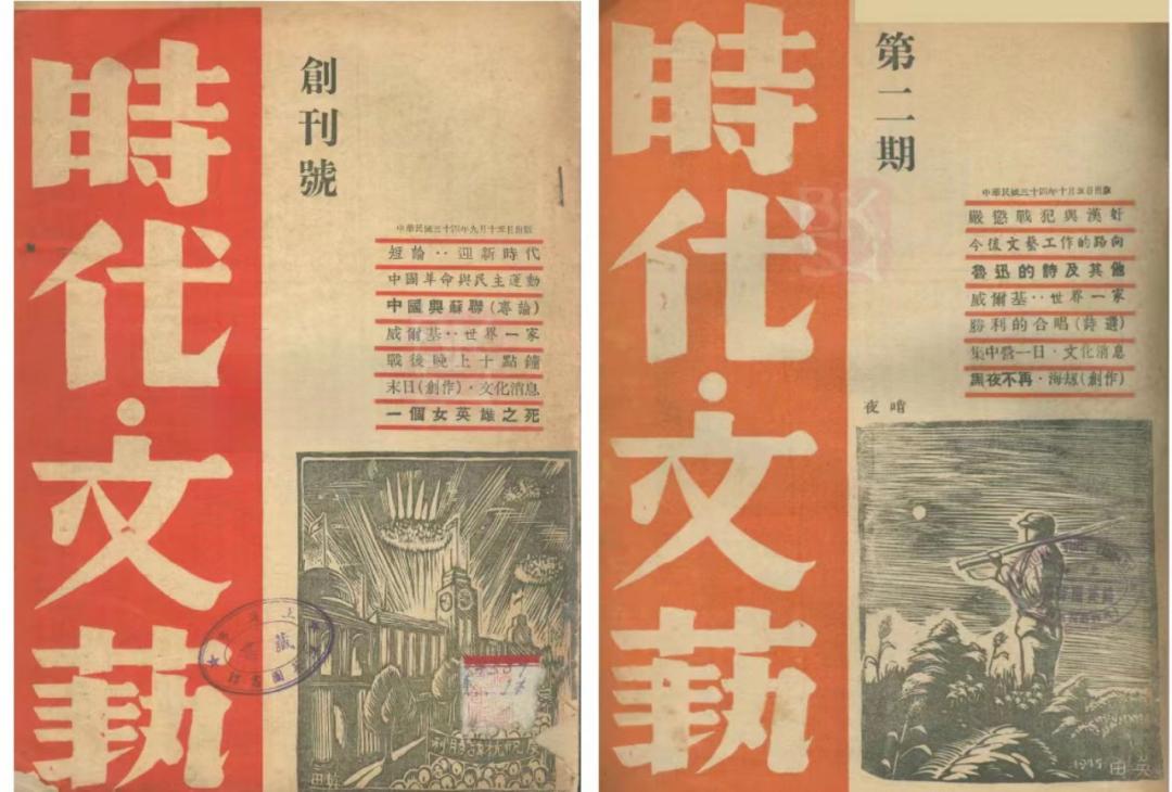 《时代·文艺》第一期于1945年9月15日问世(有新闻出版史研究专家称其为“抗战胜利第一刊”),由富通印刷厂承印,后来才知这是地下党创办的一家印刷机构。创刊号上,周幼海撰写了一篇题为《现阶段的中国革命与民主运动》的政论文章。第二期于10月15日出版,主题是要求严惩日本战犯和汉奸卖国贼。但后来因为周幼海家发生变故,办刊资金链中断,《时代·文艺》不得不停刊。