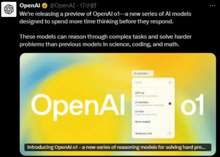 2024年9月12日,OpenAI 发布了o1-preview 模型。应用先进的“思维链”推理功能,这款模型可以处理更加繁杂的问题,它的诞生预示着数字生命正朝更复杂的自主问题解决和自我学习形式迈进。