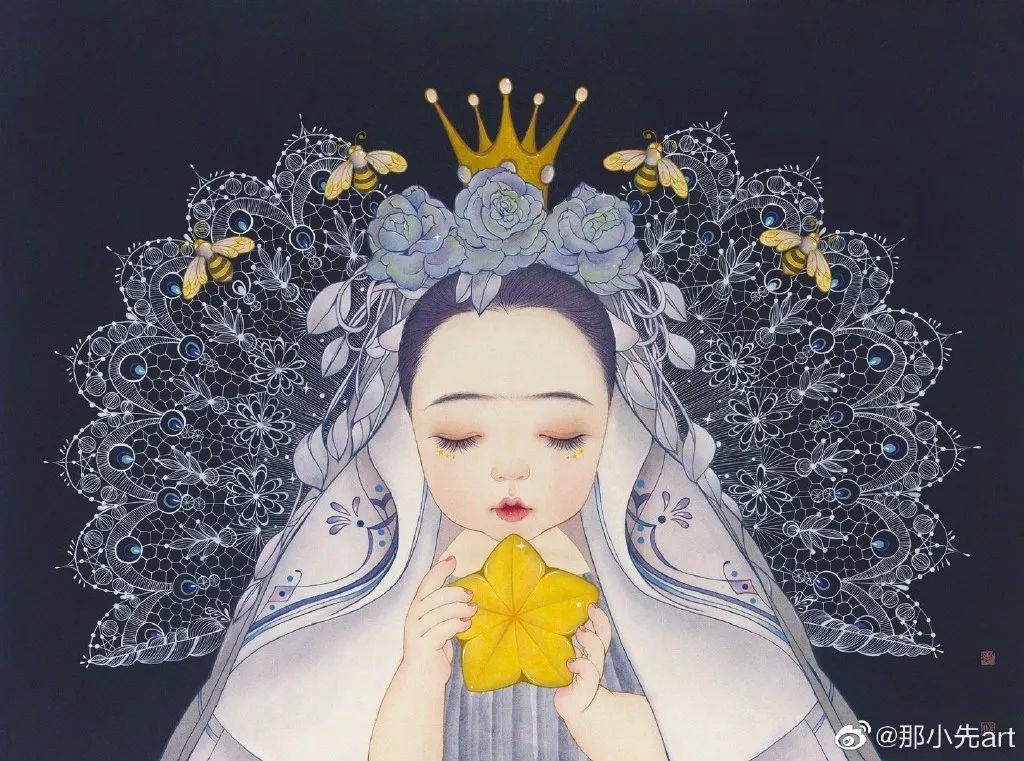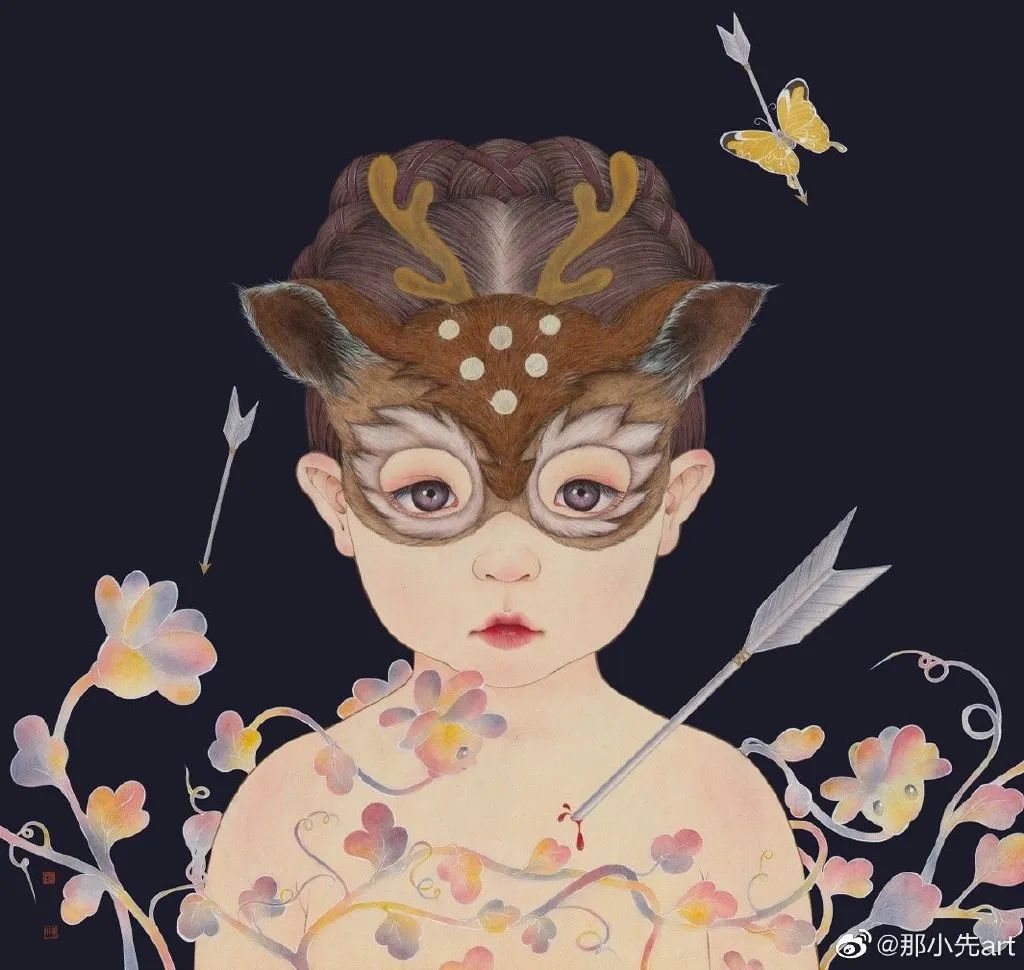 那小先,原名殷先娜,女,1993年出生于中国书画之乡高唐,著名画家许文邠高徒,2013年考入山东工艺美术学院专攻工笔画以及人物画。擅长写实主义工笔国画,写意与工笔相结合,笔下人物有超级写实意蕴又带有梦幻主义色彩。
