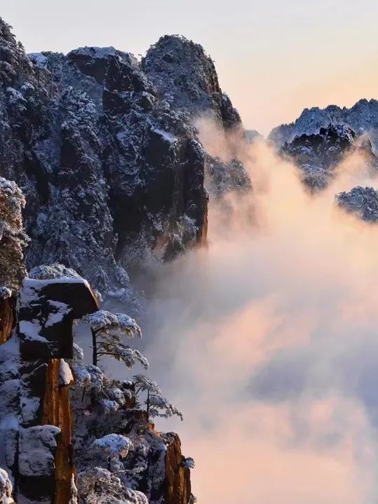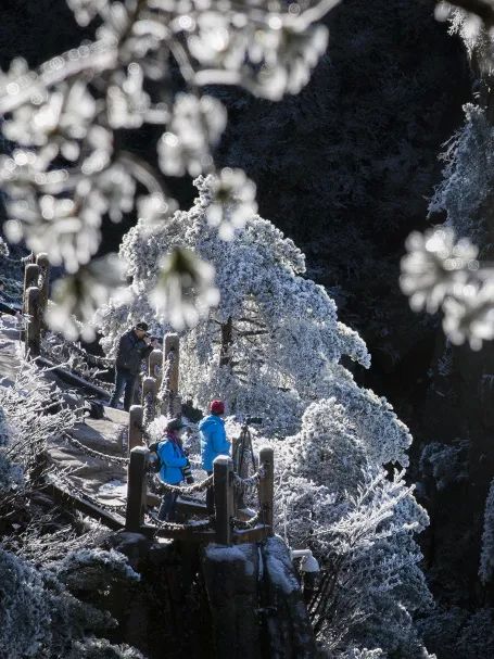 雾凇冬雪,更是黄山冬日里的一绝。雾凇晶莹剔透,宛如玉树琼枝。雪花轻轻飘落,覆盖了整个山峦,银装素裹,分外妖娆。行走在这样的美景中,仿佛步入了一个纯净无瑕的童话世界。