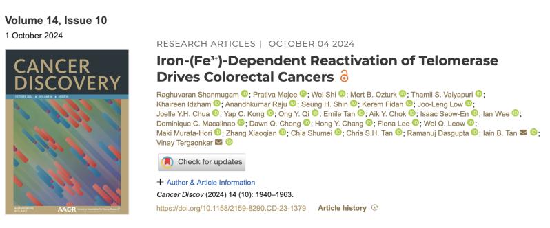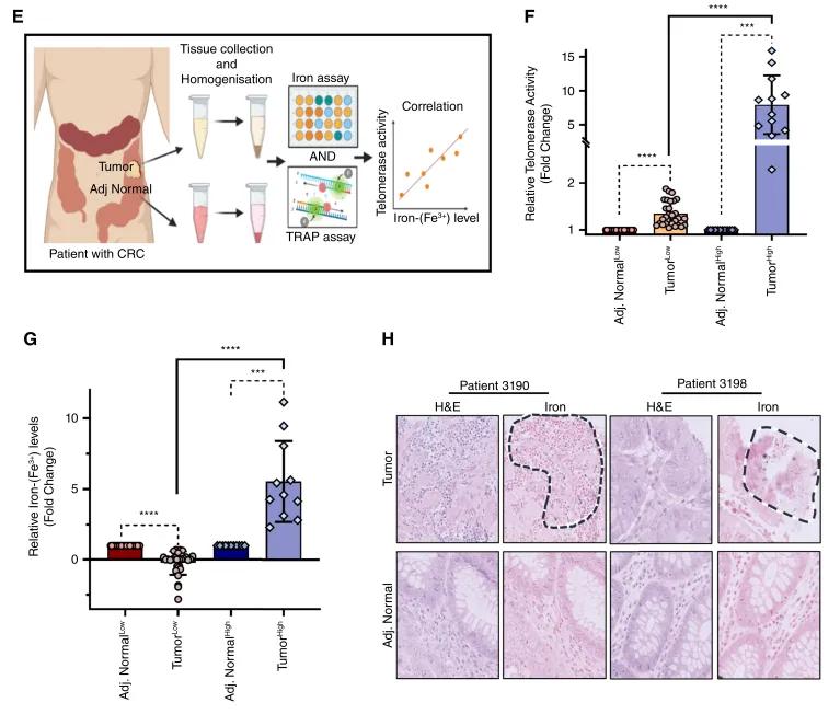研究截图研究使用了结直肠癌患者的样本发现,细胞铁感应蛋白Pirin会与红肉中的铁相互作用,以铁依赖的方式重新激活端粒酶,解锁了癌症的限制,从而诱导癌症发展。