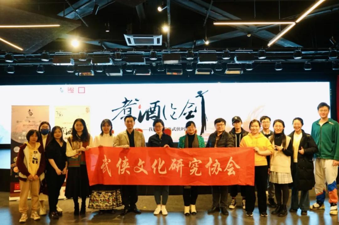▲“煮酒论剑”座谈会合影/图源:微信公众号“北大武侠”汤双宇做过武侠广播剧,策划过歌曲制作,熟悉如何组团队、带班子、推进度。她找到了国风音乐、书法、美术相关的校内外团队,多方合力之下,制作出纪念曲和PV。