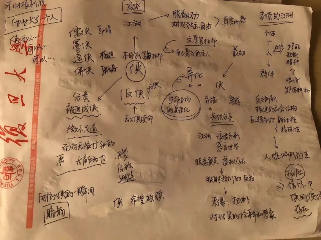 ▲裔宇欣的演讲稿手稿/图源:裔宇欣于是,在演讲稿结尾,她写道:他(狄云)没有郭靖的天下情怀,没有令狐冲的灵性洒脱。他常受失败围困,除了要战胜外敌,还要艰难对抗自己业已形成多年的世界观。他其实更像我们。……可正是在这份人性消解之下,侠的形象才更显光辉。