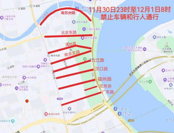 一、2024年11月30日23时至12月1日8时,南苏州路双向(中山东一路—河南中路)、北京东路双向(中山东一路—河南中路)、滇池路双向(中山东一路—江西中路)、天津路(江西中路—河南中路)、南京东路(中山东一路—河南中路)、九江路(中山东一路—河南中路)、汉口路(中山东一路—河南中路)、广东路(中山东一路—河南中路)、福州路(中山东一路—河南中路)、元芳弄(中山东一路—四川中路)禁止车辆和行人通行。