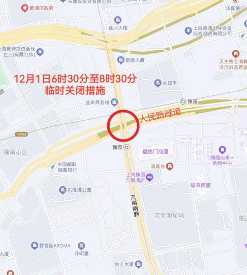 五、2024年12月1日6时30分至8时30分,人民路隧道河南南路出口实施临时关闭措施。