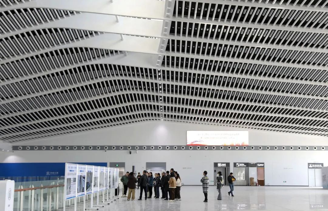 站在站前广场上,眼前流线形的大屋顶与突出的进站门厅形成重檐格局,这形如门户般的檐下空间,展示着湖州南浔站“愿为城市客厅,欢迎八方来客”的美好愿景。“整个站房的建筑面积约1.5万平方米,设计最高聚集人数1000人。希望构建一个‘畅通融合、绿色温馨、经济艺术、智能便捷’的现代化车站……”中铁电气化局集团有限公司工程部技术主管王言鑫为观察员们介绍。