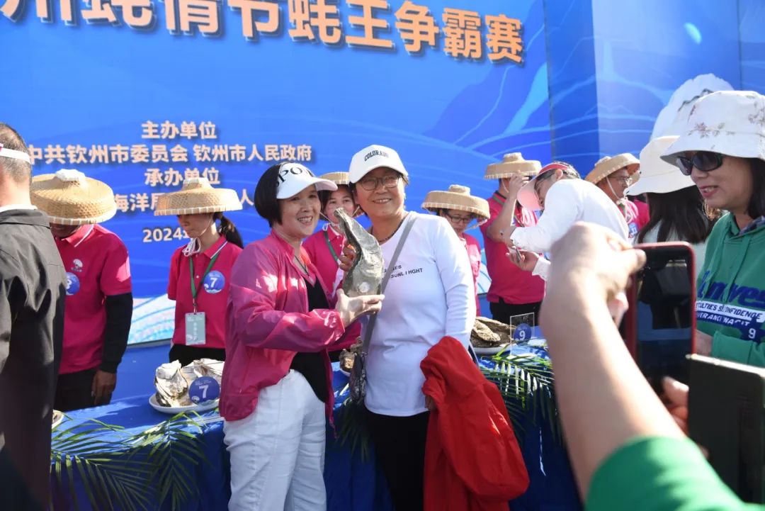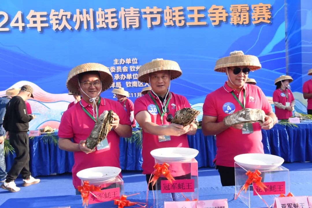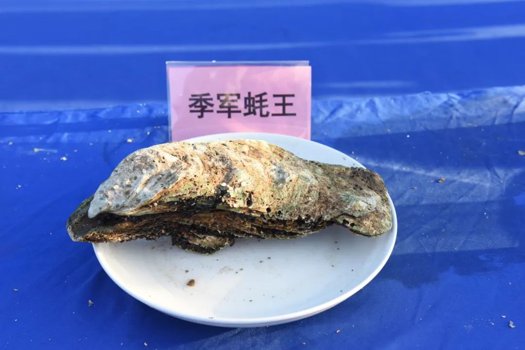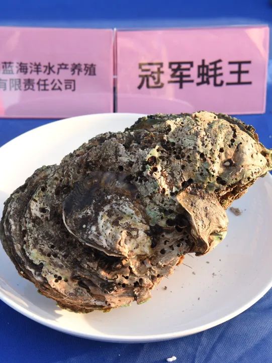 经过激烈角逐,钦州蓝海洋水产养殖有限责任公司养殖7年之久,重2380克,长164毫米,宽125毫米,高255毫米,以总分1151.47分的成绩获得了本年度的冠军蚝王,钦州市顺达海水养殖有限公司获得亚军,钦州天泽地润养殖有限公司获得季军。