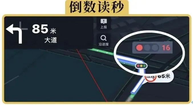 而且,红灯倒计时功能也有助于提高交通安全性,减少因红灯变化而导致的急刹车和追尾事故。如果遇到前面有公交车刚好挡住你的视线,你可以利用导航APP查看红灯倒计时情况;如果遇到早晚高峰大堵车时,等待红灯具体轮数提示也能减缓驾驶员行车的焦虑。