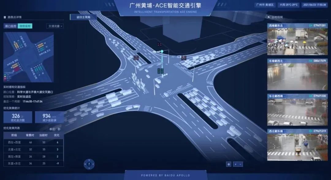 2020年8月,广州市黄埔区、广州开发区与百度Apollo就“面向自动驾驶与车路协同的智慧交通‘新基建’项目”达成合作。当交通管理系统接收到来自路面监控设备的数据时,系统会对数据进行处理,并调整信号灯的时序,以优化交通流。这些信息随后可以通过数据通信网络发送给导航APP,从而让导航软件了解信号灯的当前状态及其即将变化的时刻。