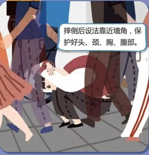 切忌逆流而逃;不要采取身体前倾或重心较低的姿势,不要弯腰拾物,以免失去平衡而摔伤;推搡可能引起更大的踩踏。