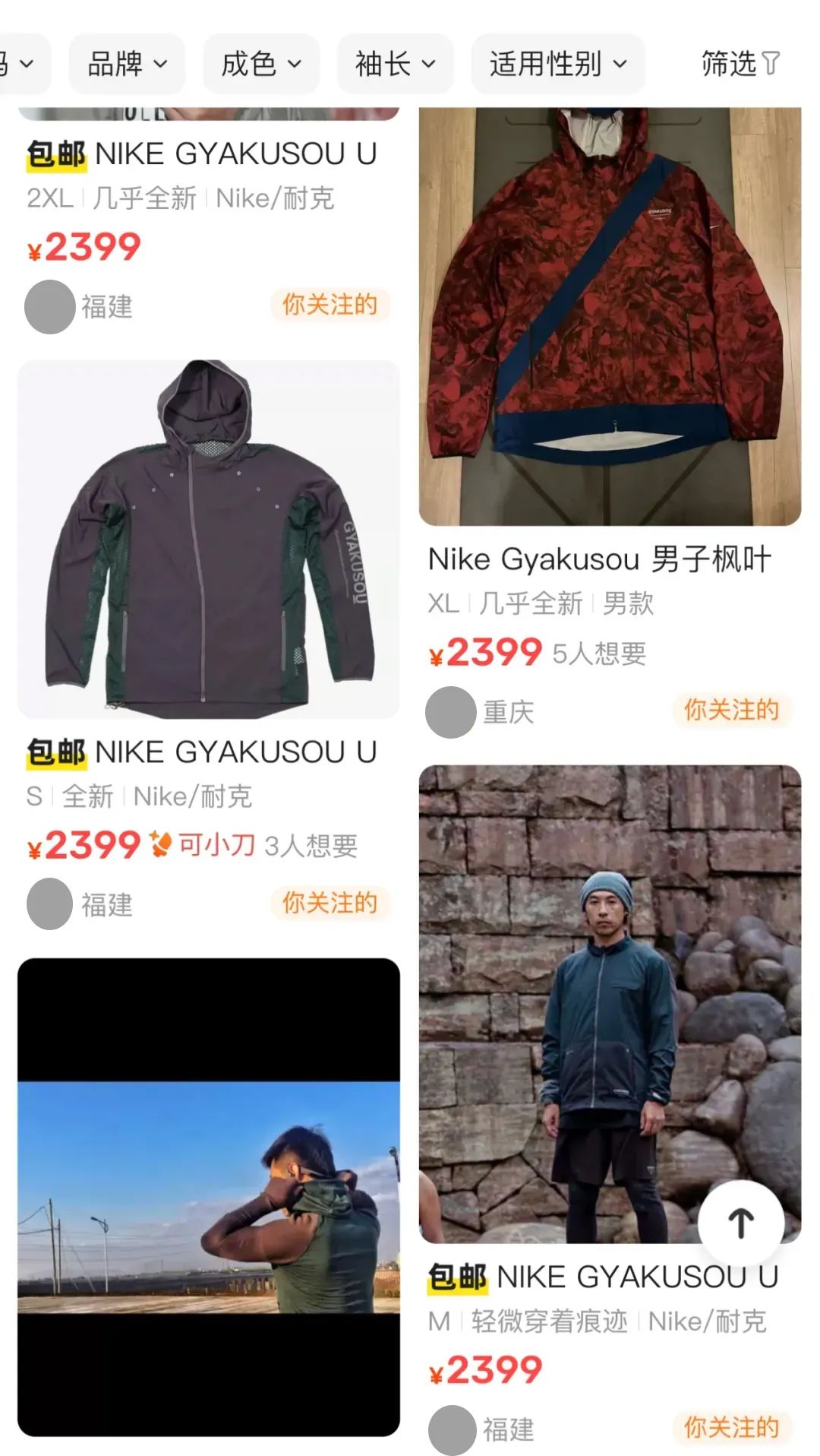 ● Gyakusou系列,图源:闲鱼截图另一颇具里程碑时刻的案例,则是adidas在2015年推出的UltraBOOST跑鞋。黑紫配色的设定强化了跑鞋本身的潮流属性定位,设计师Ben Herath更是借由这个配色将城市跑步的概念带到跑鞋中来。