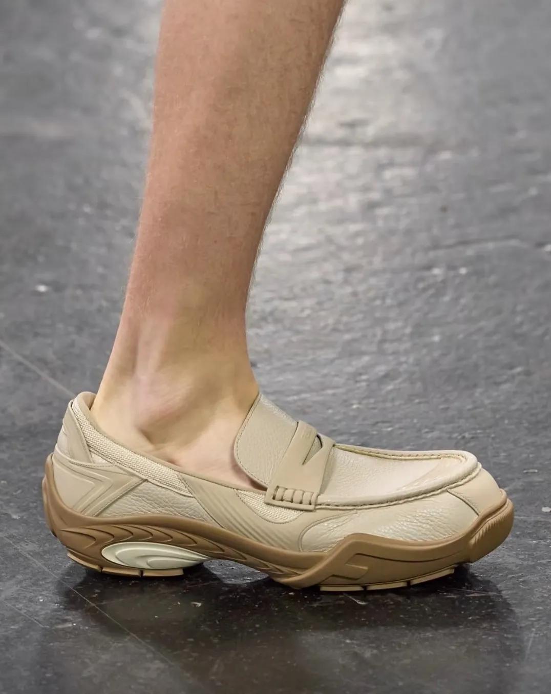 嗅觉敏锐的品牌们也第一时间捕捉到这个趋势,纷纷开始研发适用日常穿着的跑鞋款式。作为普通消费者,尤其对于上班族来说,跑鞋已经成为不少人的通勤必备,舒适性那是相当友好。最新的趋势则是由跑鞋与皮鞋相结合的“杂交”样式。这种趋势分别汲取来自跑鞋的科技鞋底与皮鞋的传统鞋面,能迎合不同人群对于跑鞋的需求,正式休闲并存,同样也深受时尚潮人的青睐。