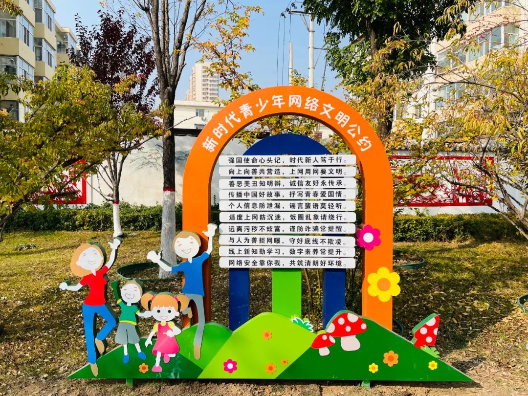 道路旁《新时代青少年网络文明公约》倡议书引导青少年形成文明健康的网络生活方式,呼吁广大青少年健康用网、理性上网,争当新时代合格小网民。