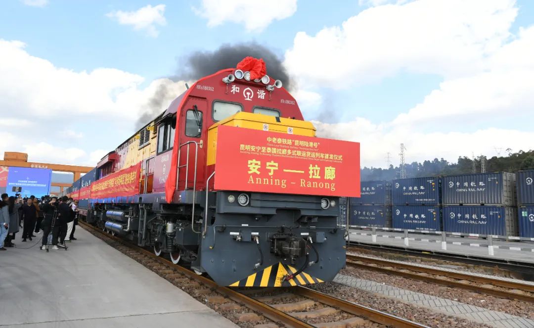 “发车!”今年11月19日,随着发车指令下达,中老泰铁路“昆明陆港号”昆明安宁至泰国拉廊多式联运货运列车首发。