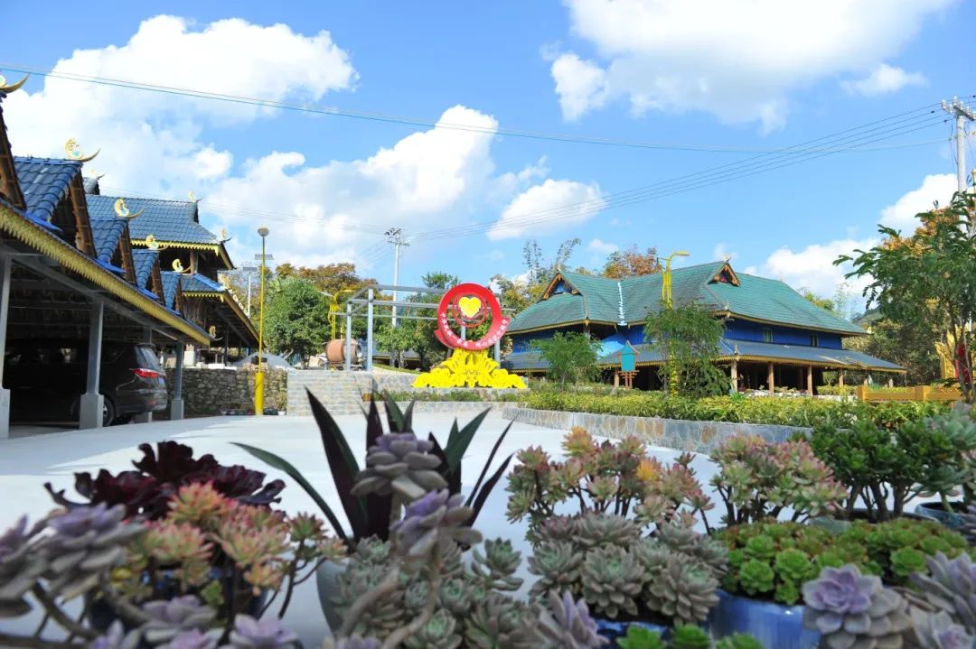 置身村寨,湛蓝的天空下,傣家屋顶崭新的深蓝色琉璃瓦片在阳光下闪耀着光芒。修葺一新的寨门、傣楼,干净整洁的村容村貌,房前屋后的花团锦簇……一个个美丽村寨已成为边境线上一道道亮丽风景。