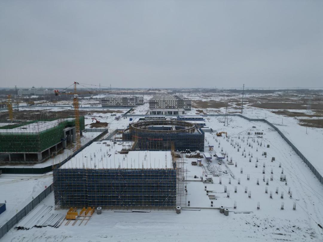 大庆医学高等专科学校迁建项目一期6栋宿舍楼及动力站建设已完成,目前施工建设的是二期2.4万平的医养康养实训楼和三期3.98万平的教学科研楼。