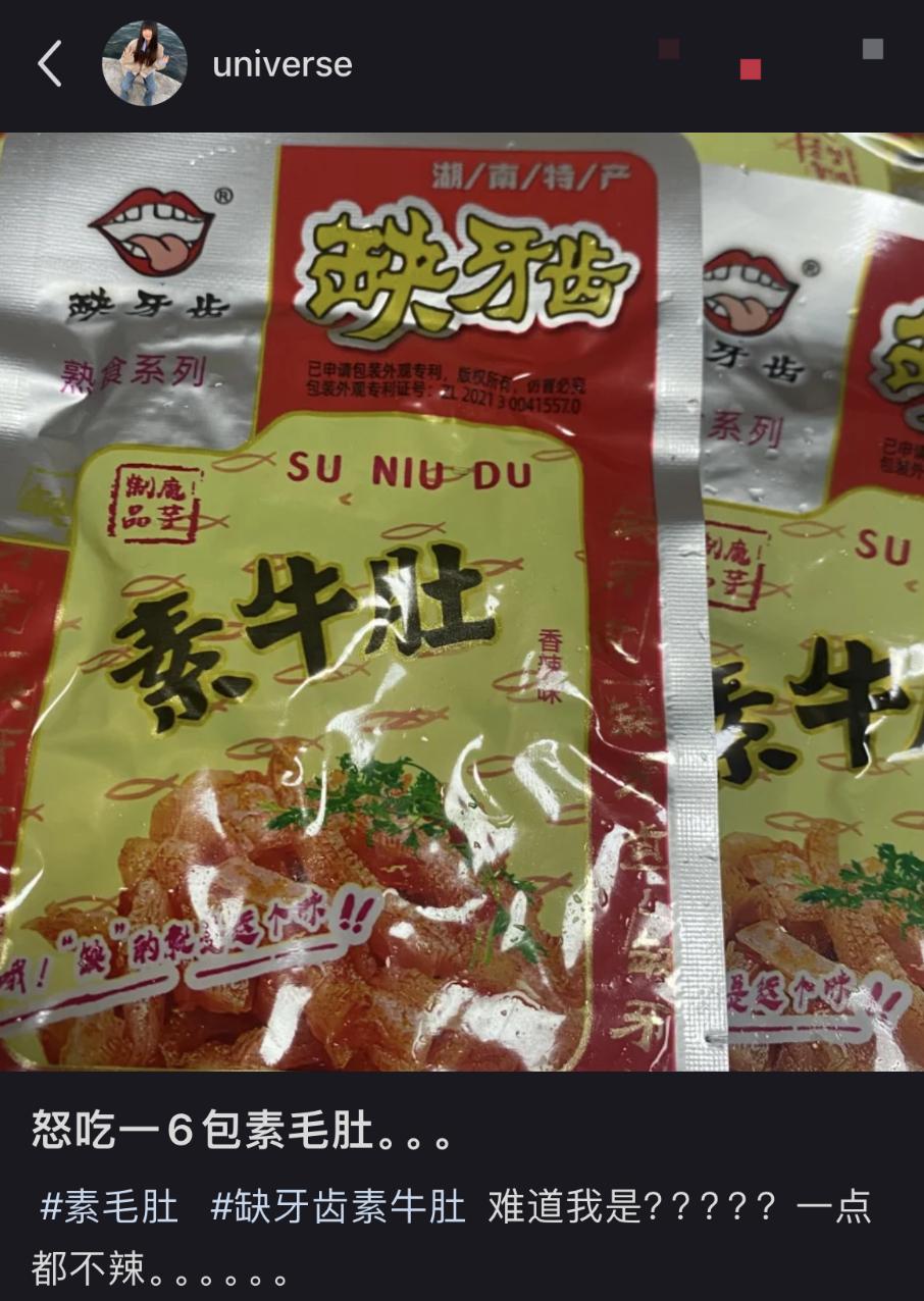 因此对有的打工人来说,素毛肚不只是一种零食,更是一个让打工人倍有安全感的老朋友。“它真正让人戒不掉的,不是辣,而是那份熟悉的回甘。”