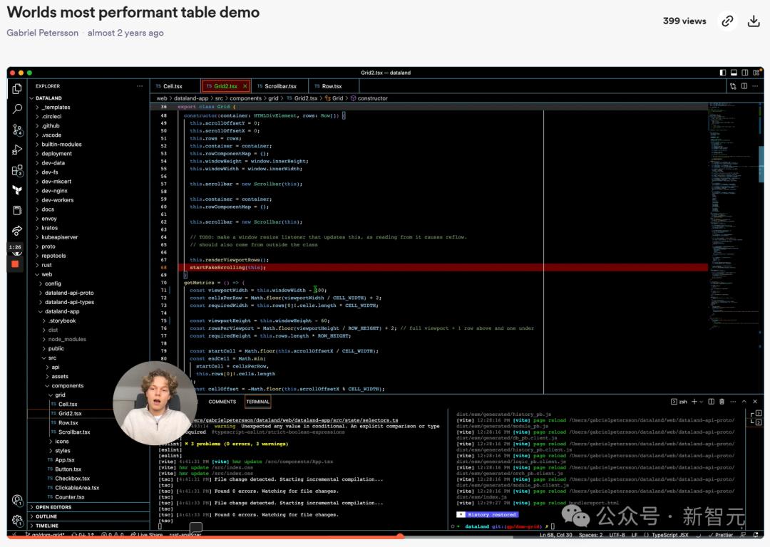 后来的两年,Petersson作为Dataland(YC孵化项目)的创始工程师,打造了一款面向开发者的高性能Airtable替代产品——能在几秒内加载数十万行数据;开发了业界性能最强的网页表格之一,可以流畅处理数十万行数据的筛选和排序,且保持稳定帧率。