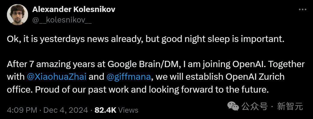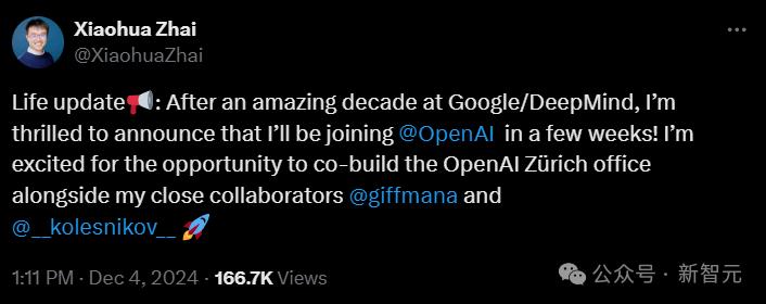 3名工程师分别是Lucas Beyer、Alexander Kolesnikov和Xiaohua Zhai,都在X上官宣了这条消息。