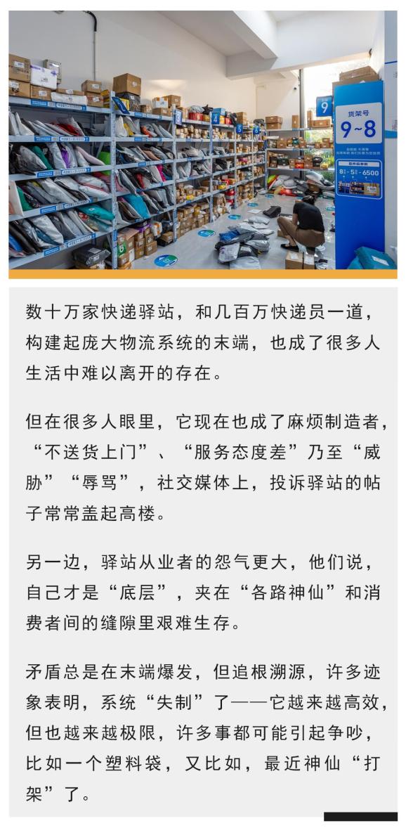 关于驿站,一个投诉最集中,或许也能帮助人们理解系统运作机制的问题是:快递驿站和送货上门,到底什么关系?