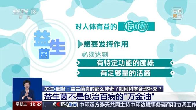 益生菌不是包治百病的“万金油”在这些商家的宣传中,益生菌俨然成了包治百病的健康万金油,不仅能减肥、改善厌食、治疗过敏、妇科病,甚至是抗癌、抗衰老等。益生菌的作用真的有这么神奇吗?2001年,联合国粮农组织和世界卫生组织联合专家委员会提出了益生菌的科学定义:益生菌系指活的微生物,当摄取足够数量时,对宿主健康有益。