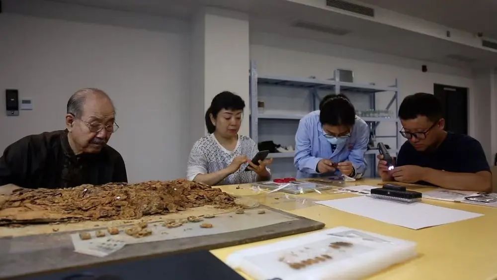 图为甲胄修复专家白荣金(左一)在观察海昏侯墓甲片堆积物。江西省文物考古研究院供图专家认为,铠甲作为古代重要的防护武具,伴随着古代科技的进步而不断改进,迄今已经有几千年的历史。海昏侯铠甲的发现为研究汉代制甲工艺提供了重要实物资料。专家介绍,铠甲实物的研究价值取决于复原工作的准确性和完整性。这些甲片的锻造工艺和铠甲的编缀方式如何?铠甲的等级是否与刘贺下葬时的身份相符?都有待进一步保护研究。
